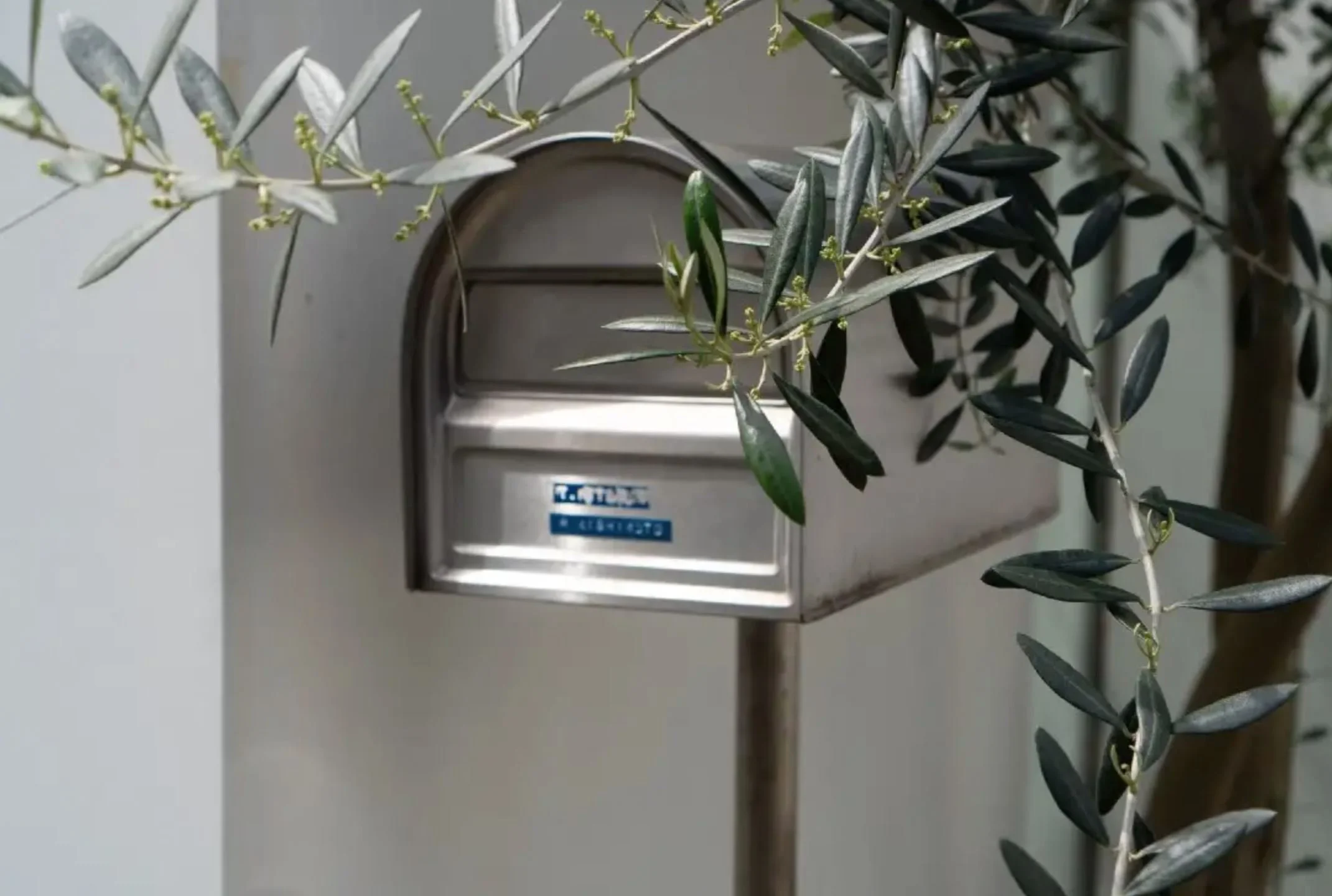 Mailbox is the medium to communicate with the outer world from the inner private community. There are two mailboxes in total in Moriyama House. The rectangular double-deck mailbox is located next to the main street. The mailbox that I am choosing has a traditional curved shape, and is located inside the house in the garden between the units. Both of the mailboxes are made of galvanized steel with a silver metallic finish. The material is reflective and minimalist, consistent with the overall design of the exterior and interior of the house.