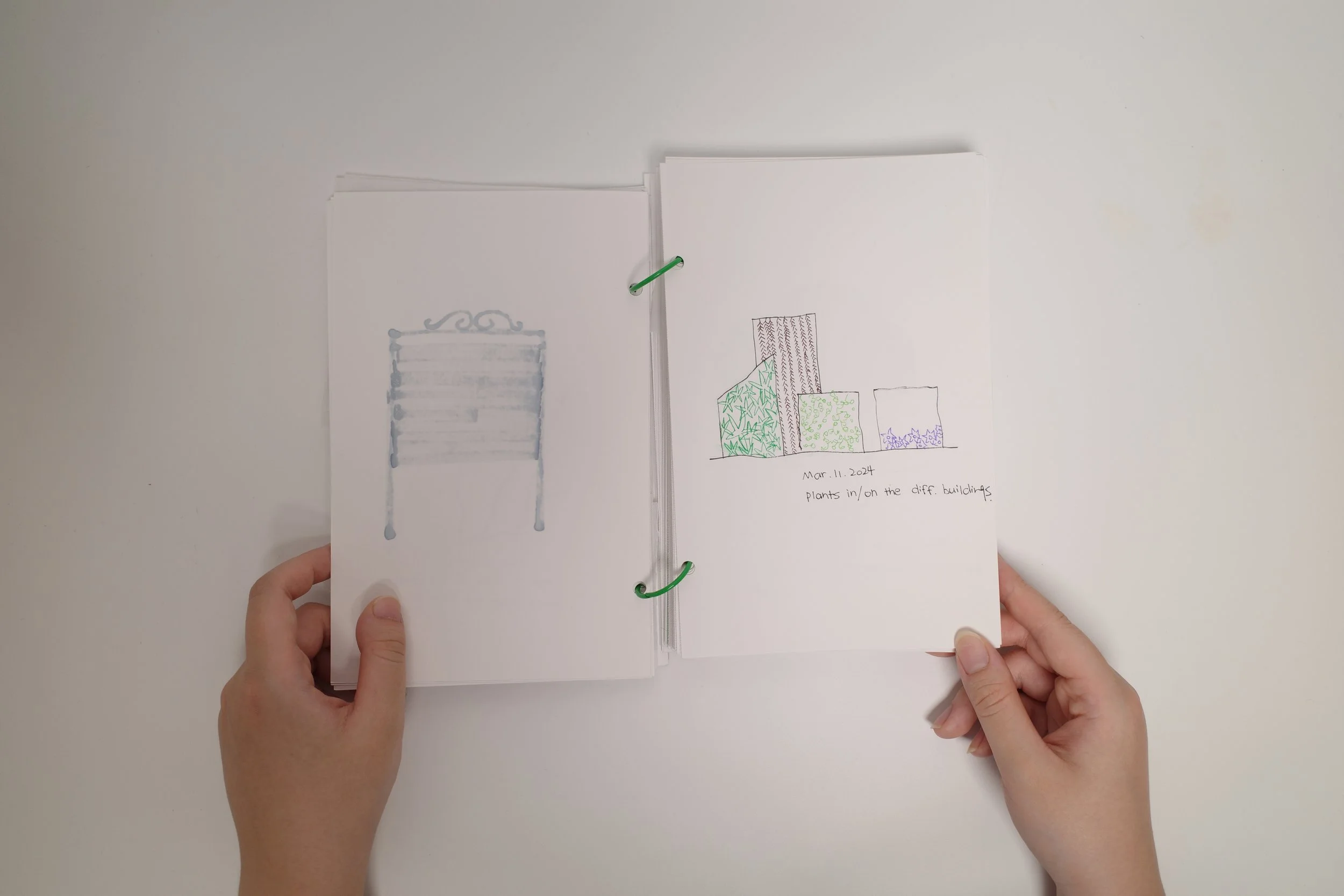 Plants and Planet captures moments when human-made structures are embraced, altered, or reclaimed by nature. By exploring the interplay between human activities, technologies, and social systems, this scrapbook challenges conventional understandings of nature and culture. It highlights how human actions create novel ecosystems and unexpected environmental changes, encouraging reflection on how we perceive and interact with our environments. From winter to early spring, we coincidently documented these scenes in different seasons, which add a dynamic fourth dimension to our built environments.